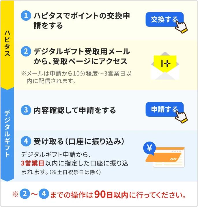 ※受取手続きは、ハピタスでの交換完了日から90日以内に行ってください。
